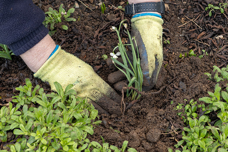 For a good number of years I’ve been threatening to add some more interest to the winter/early spring garden, and I finally made a start this year by planting more bulbs and buying a few Hellebores and Primulas. Today we found ourselves planting a very modest 150 snowdrops. No fancy or expensive varieties, just the common, but lovely, Galanthus nivalis.
