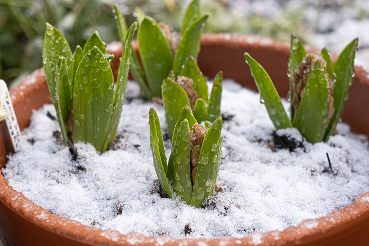 Emerging Hyacinthus orientalis ‘Pink Pearl’