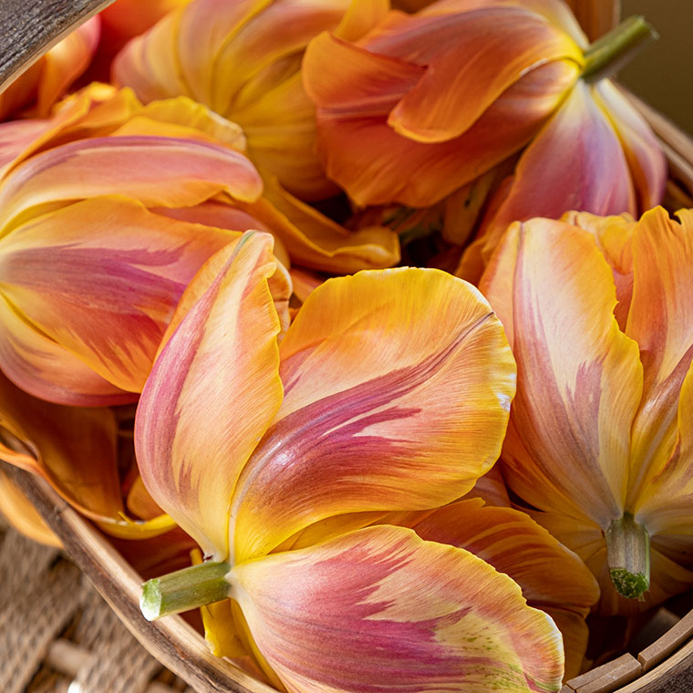 I didn’t notice the incredible beauty of the back of the outer leaves of Orange Princess until one morning this week. I was working my way around the garden, deadheading and generally tidying up and noticed how lovely the underside of the heads were. By that time they were all in the tub along with some weed and other debris, so I fished them out and put them into a little trug, which was the only thing I had handy.