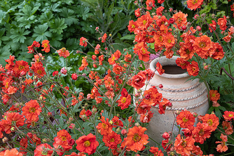 Your flowers of geums are putting on a show in your garden ( and especially in front of this pretty terracotta pottery )