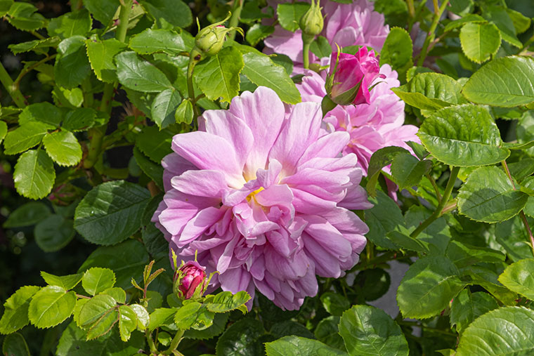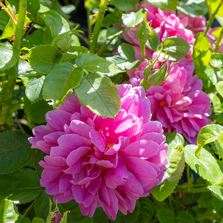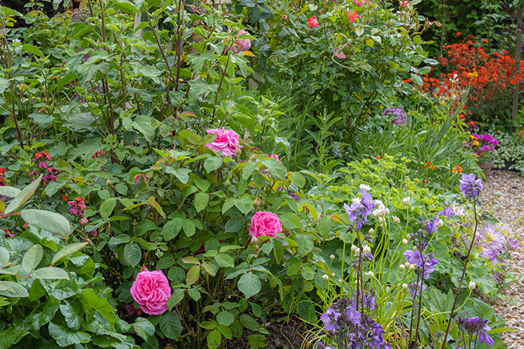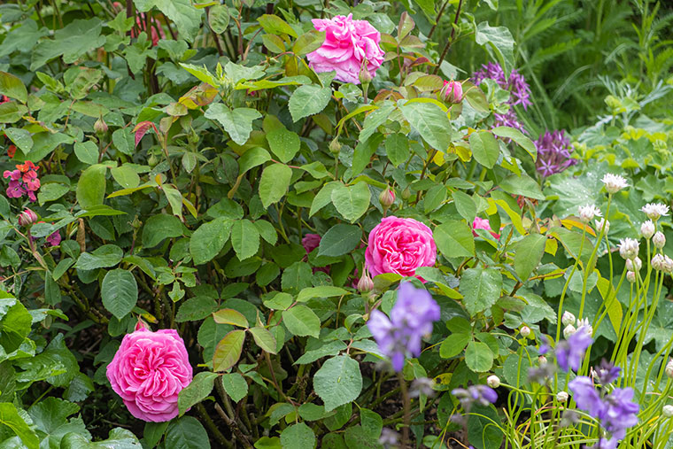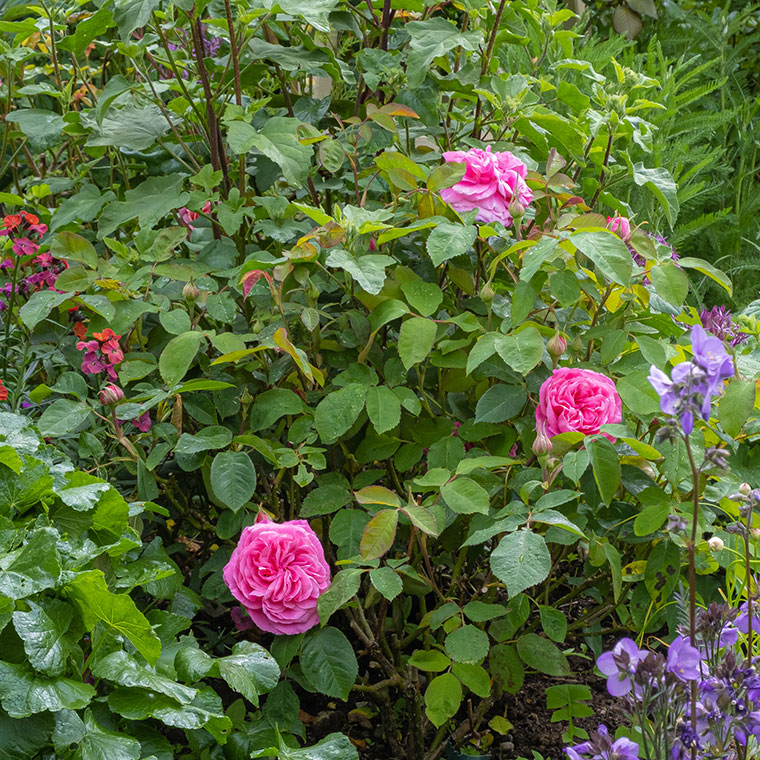 Everyone loves Gertrude Jekyll with her beautiful rosette-shaped bright pink flowers and gorgeous perfume. This is her first year in the border, she has spent the past few years in a pot, but the pot became damaged so it was time to find her a new home. So far, she seems quite happy where she is.