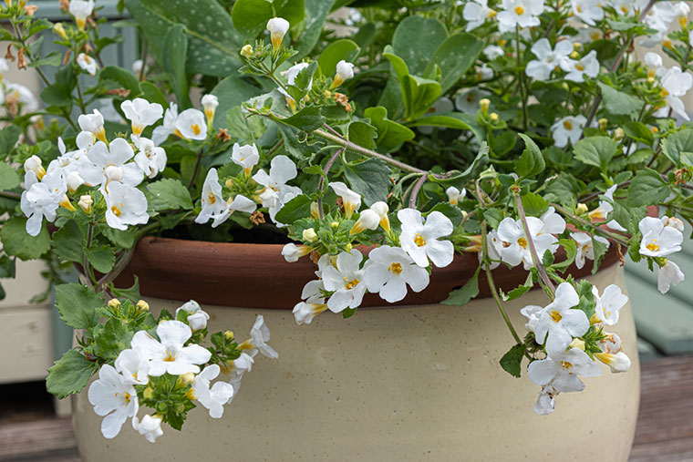 Why have I never grown Bacopa before? This is such a pretty plant and I’m sure as long as Friday’s high winds haven’t destroyed the flowers, it should cascade further over the pot and put on a pretty good display from now until summer is well over.