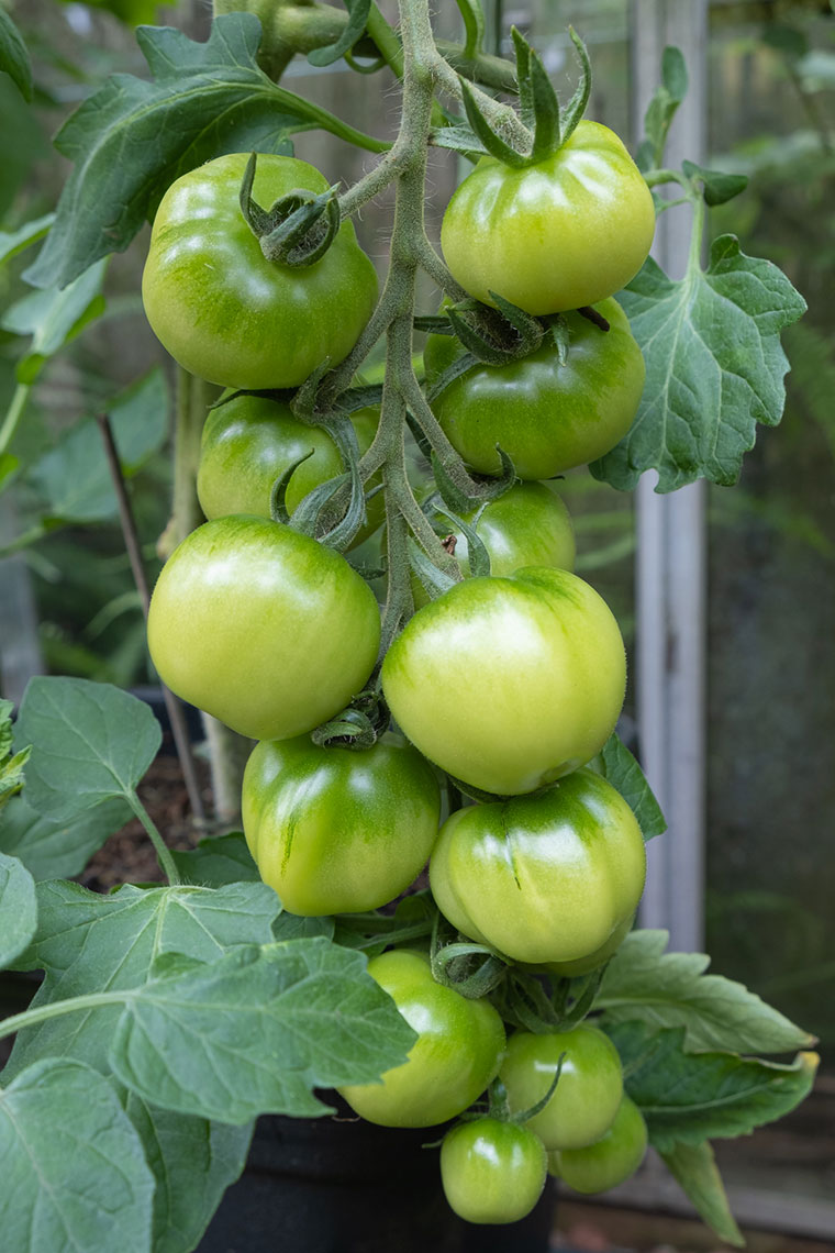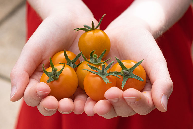 My nine-year-old visiting grandson had the honour of picking the first six tomatoes in the greenhouse. They are Tomato ‘Sungold’ and simply delicious.