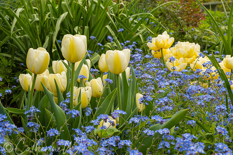 There are so many fabulous plant combinations in today’s plant-rich world, some of which would take your breath away, but at this point in time, mine is the tulip and the lovely little forget-me-not combination. The images are from previous springs.