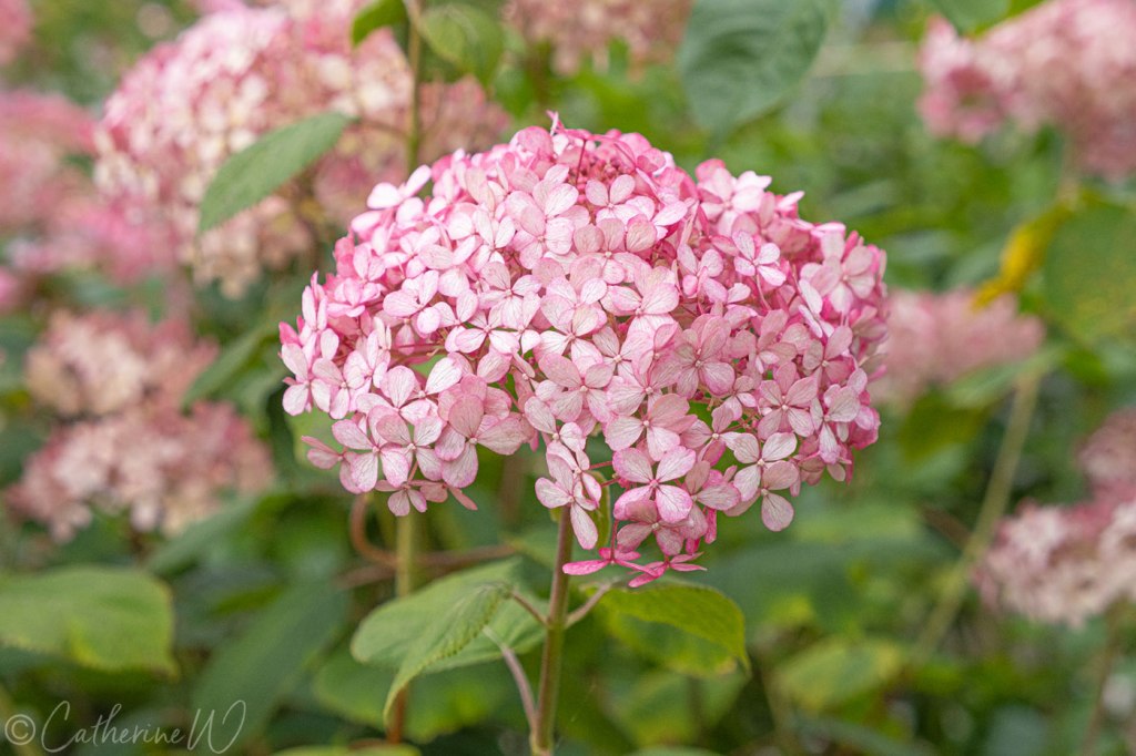 Hydrangea ‘Pink Annabelle’. Finally, today’s feature image is one of the previously shot images. I have to admit that this particular hydrangea, which I passionately disliked in its first year, has morphed from an ugly duckling to a beautiful princess – hence the rather odd post title! The flowers are large, but light and airy. Those gorgeous blooms are fading rapidly now and I really wanted to get it into this post before the next camera shots show it in its autumn colours which are still (to my eyes) rather dull – but perhaps only when compared to its summer splendour.