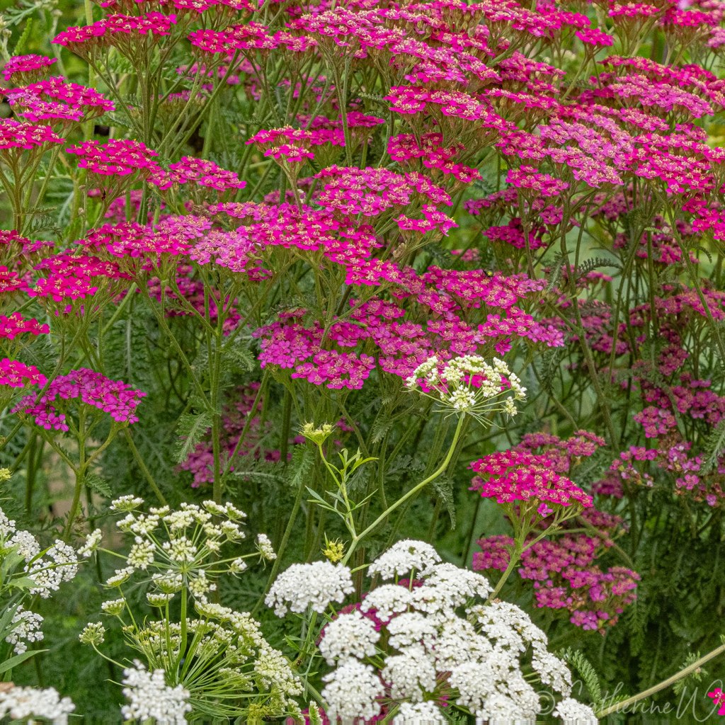 Achillea and Ammi ‘Snowflake’. This Ammi was planted further back in the border, but over the weeks it has managed to sprawl forward to snuggle up with Achillea ‘Crimson Queen’, much as it has been doing with other plants all summer.