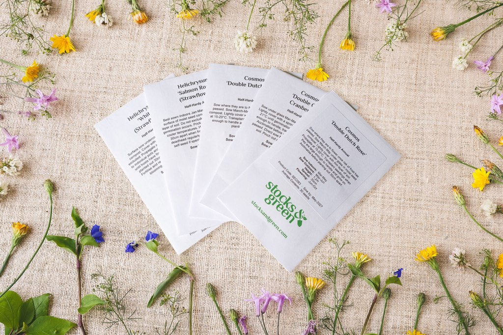 The lovely wildflower arrangement on linen is the stock image, but if I can work some magic and turn those seeds into glorious flowers the stars of the show next year will be grown from the contents of those five seed packets along with the others in my seed box!
