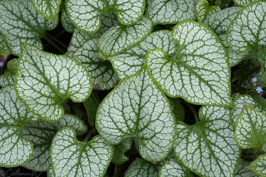 Brunnera ‘Jack Frost’. While on the topic of leaves, Jack Frost has grown well since I lifted it from the raised bed where a hungry caterpillar (or more) was making a meal of it.