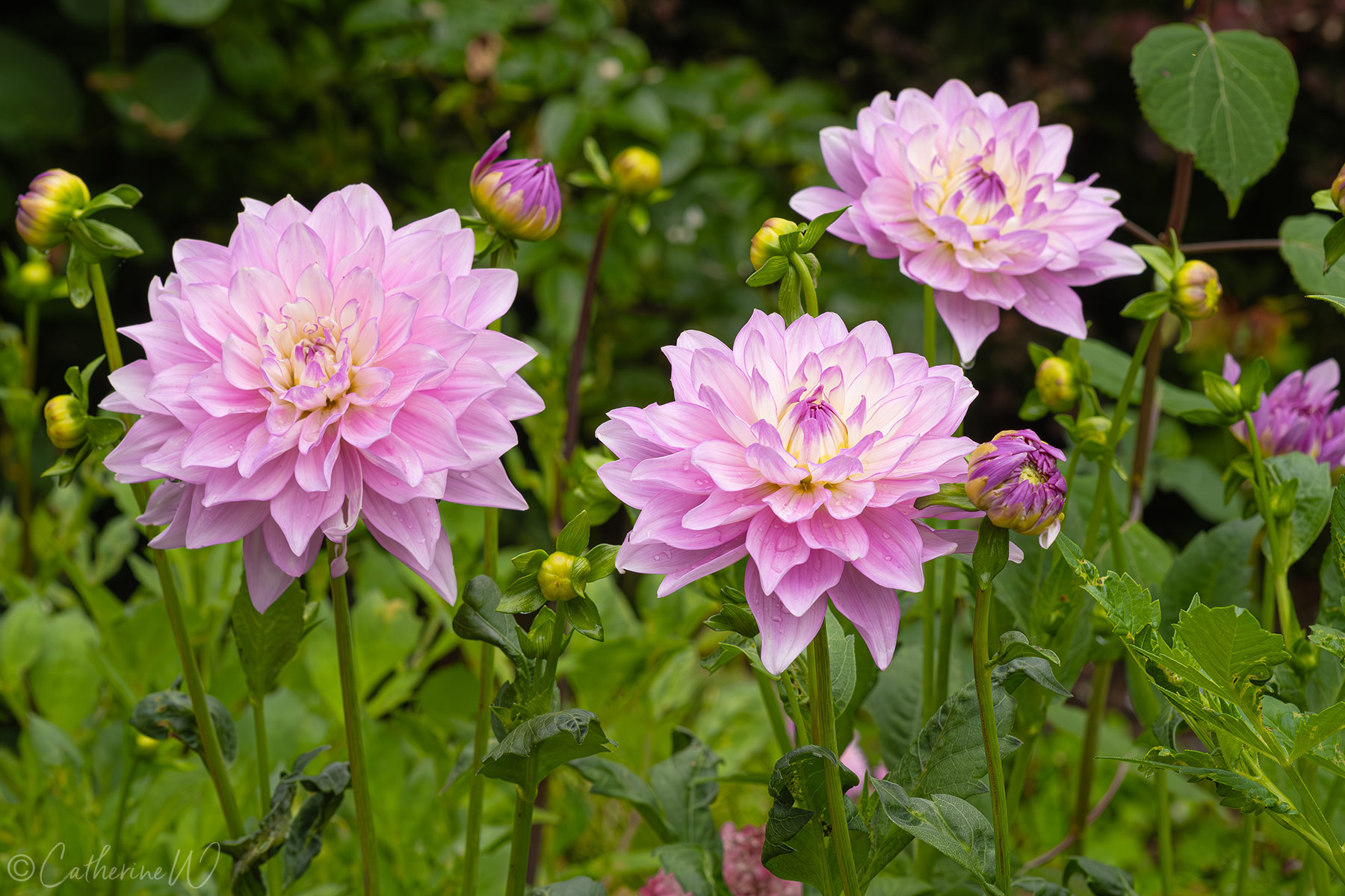 A beautiful dahlia Catherine! Mine have all been nibbled too, although earwigs seem to be the lesser problem…. not sure what it is that eats them but they only appear to be active at night when I can’t check! The hydrangeas are also lovely – especially that dark red one. Yes, dramatic is the right word, and regal.
