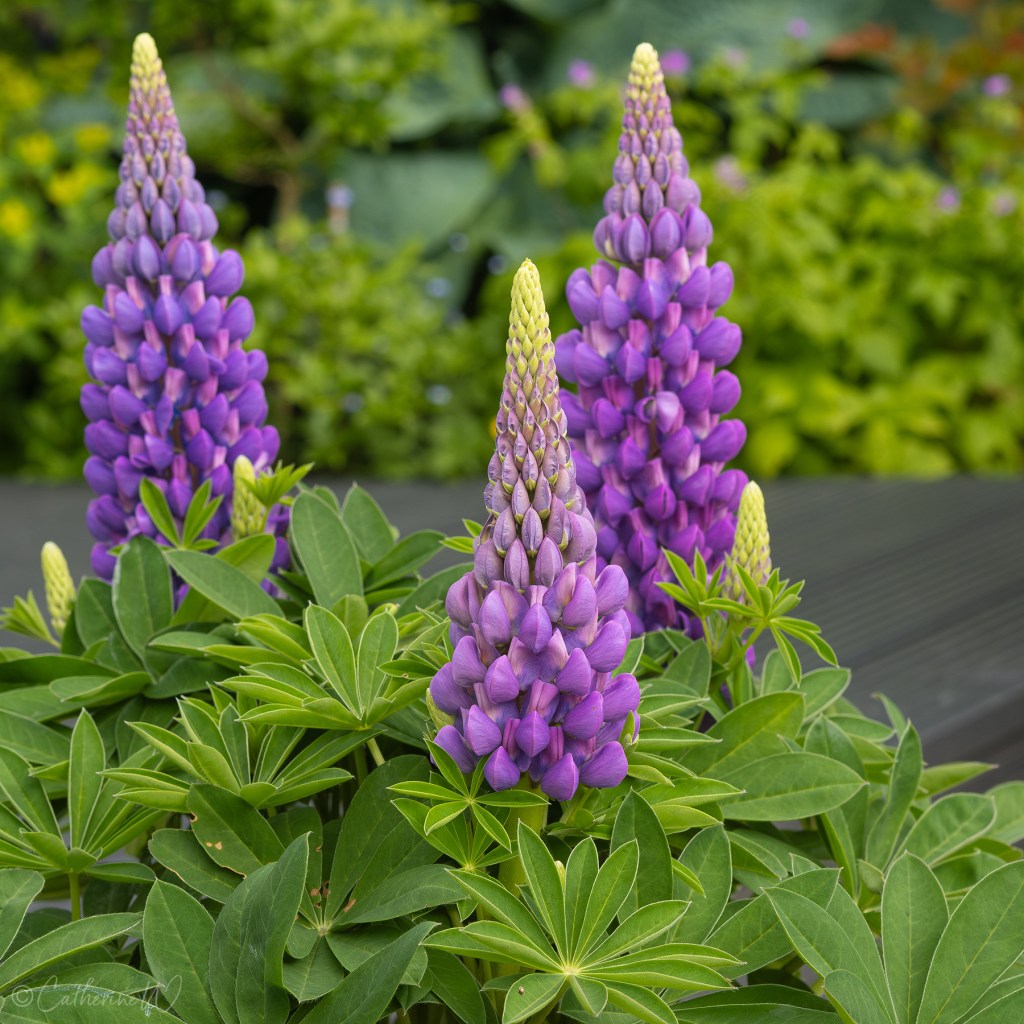 Lupin ‘Melody’. A pretty lupin and not too tall. Sales & marketing say that it’s a china-blue lupin. It does have hints of blue when the flower spikes first emerge, but as the flower spike emerges it turns a richer, bluish purple.