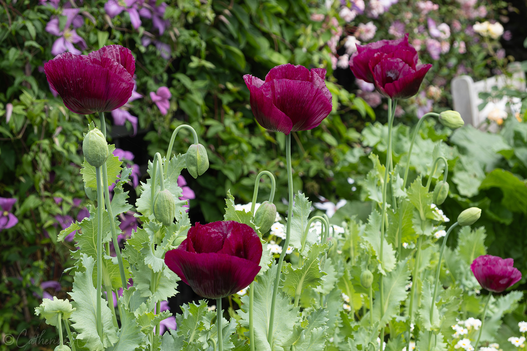 Hello Catherine , the photo of rose ‘Scarborough Fair’ and the nepeta background is lovely! And very pretty dark purple poppies.