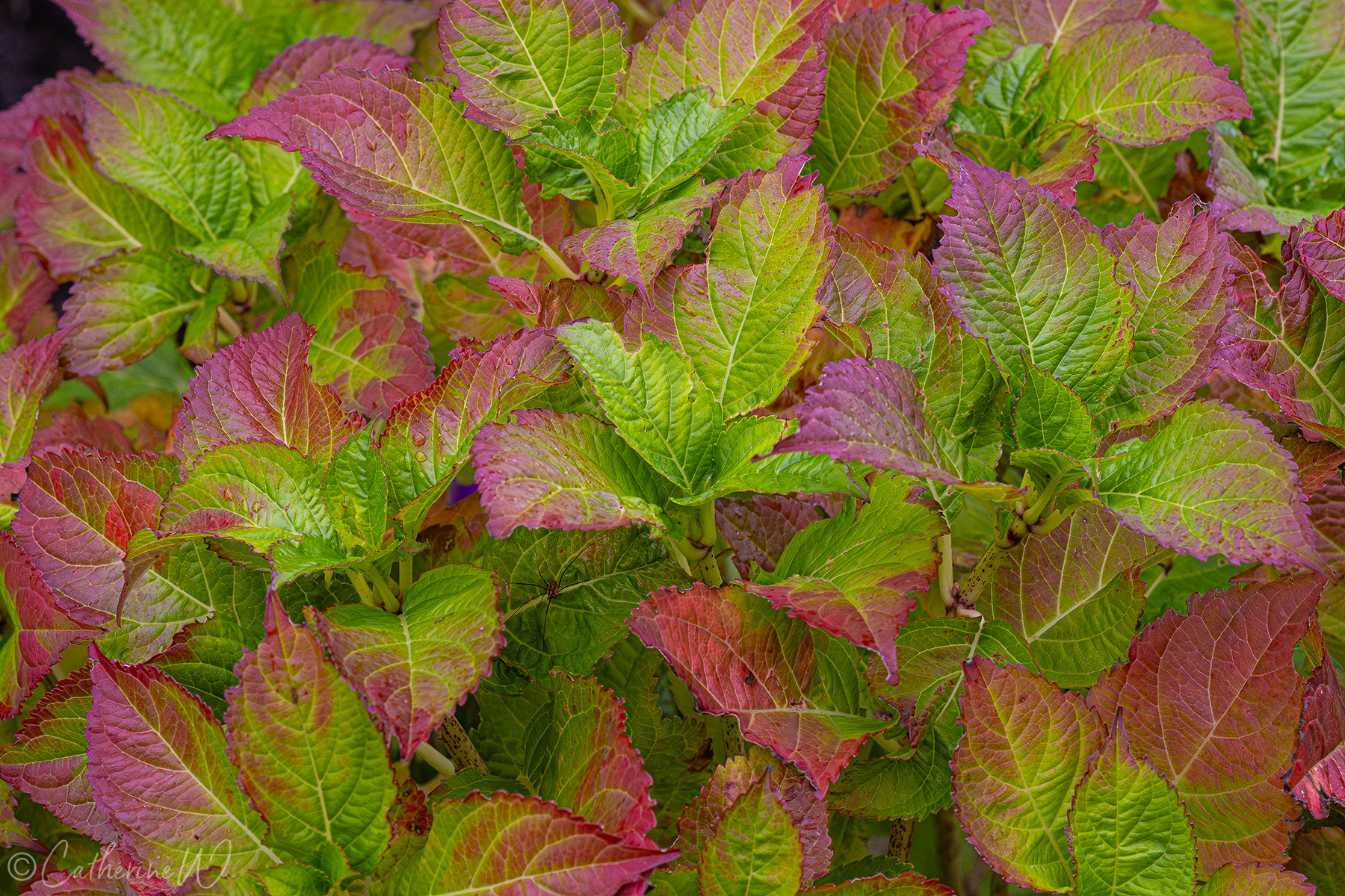 Hydrangea. This unnamed hydrangea is usually very floriferous but didn’t produce a solitary bloom this year. Look at what it’s doing now! It’s in a large container, and probably pot bound. Perhaps rescuing it from the constrains of the container and finding it a home in the soil might help it produce flowers next year. The foliage is lovely though!