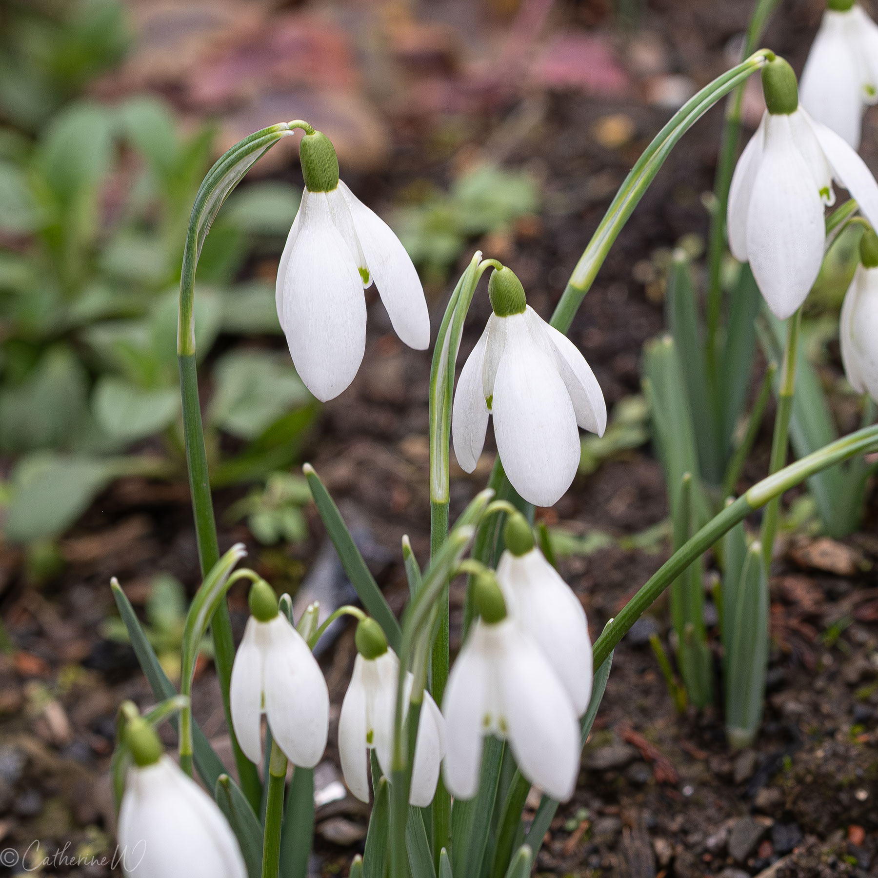 Snowdrops. First up, plain and simple, are the snowdrops. Little clumps here and there, not yet spreading themselves around. But that should come in time. I hope.