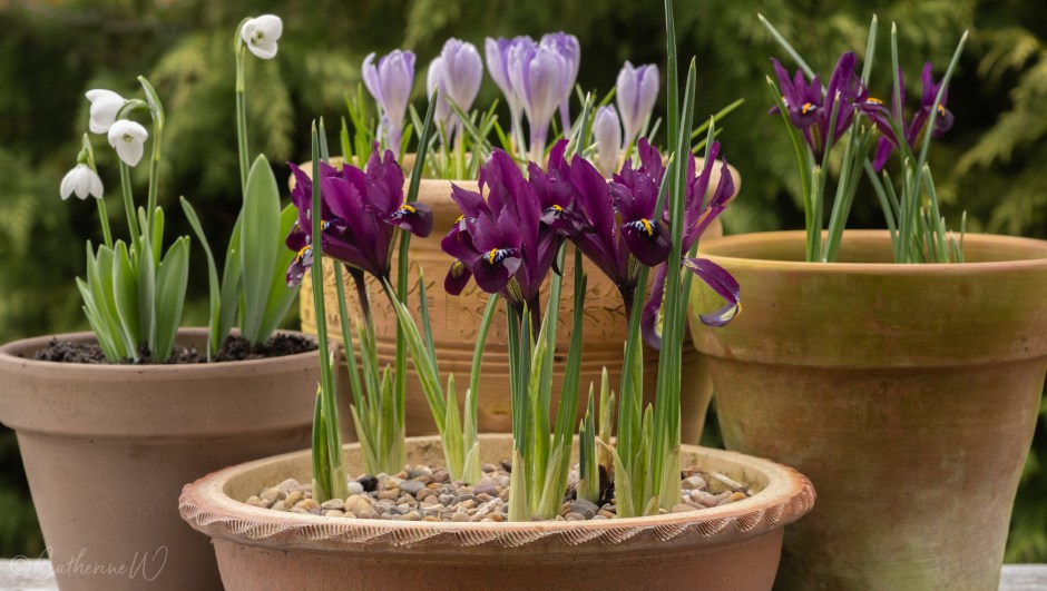 But there’s another problem – not all bulbs planted in pots have appeared. In some cases, 50% are missing. The tops of the pots are undisturbed, and I’m left wondering if something else has been at work that has entered from beneath the pot. Perhaps covering the pots’ drainage holes with mesh might help? However, let’s get on with this week’s Six on Saturday.