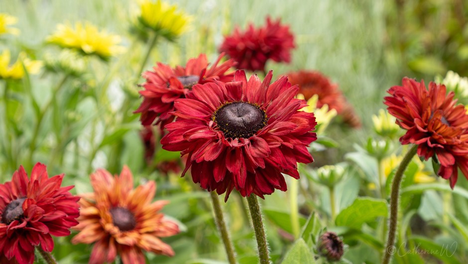 The garden is heavy with colour right now, but individual plants, and in particular, the roses, are damaged by the heavy downpours of the previous week. I haven’t had the time to get round everything with pruners to tidy them up, but before my family returned home, my daughter and my 14 yr old grandson son spent an afternoon in the garden deadheading the roses. Alas, more heavy rain has thundered down since then and now I’m having to repeat the process by myself.